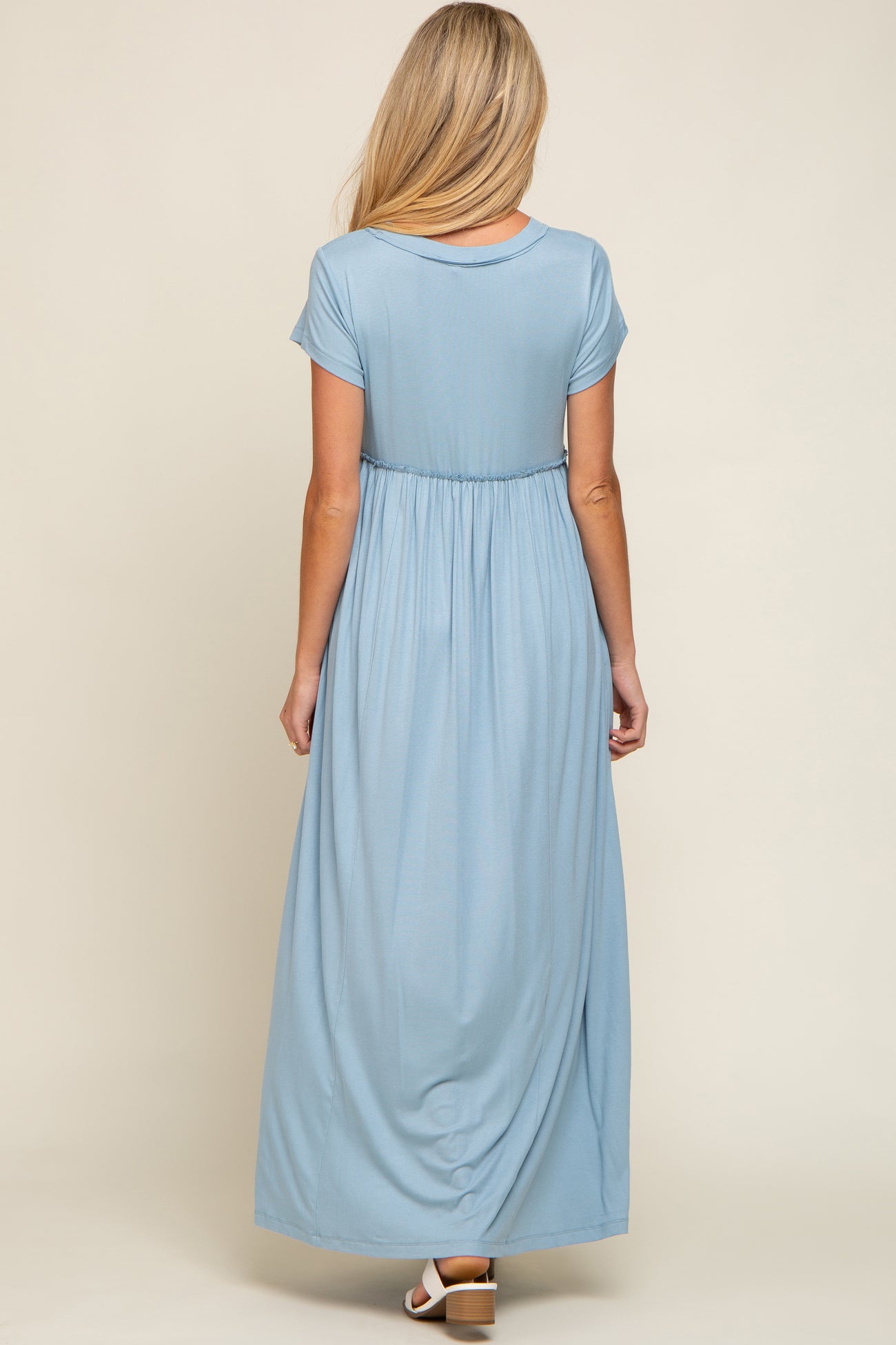 Light Blue Short Sleeve Pocketed Maternity Maxi Dress