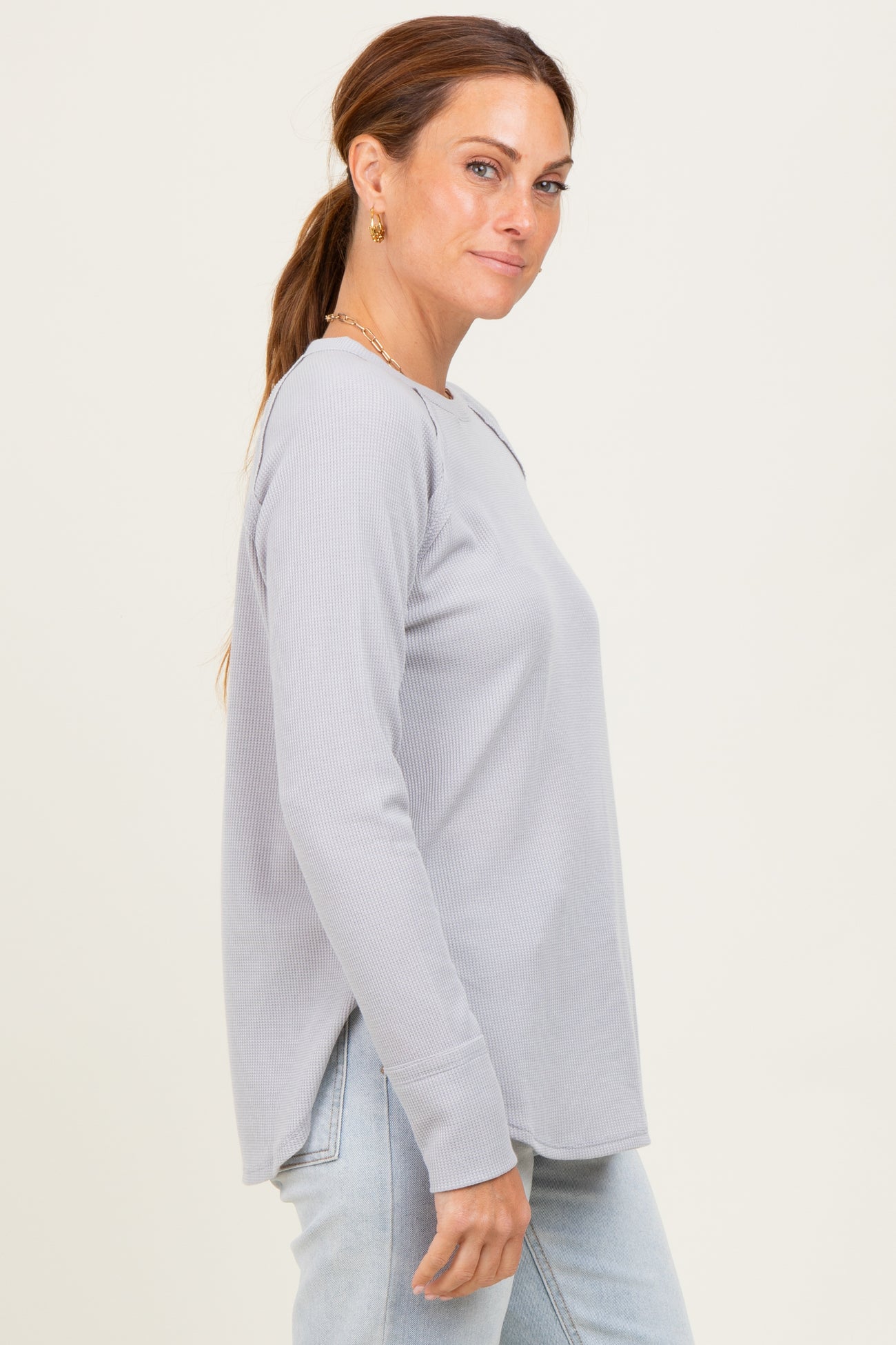 Light Grey Baby Waffle Knit Long Sleeve Top