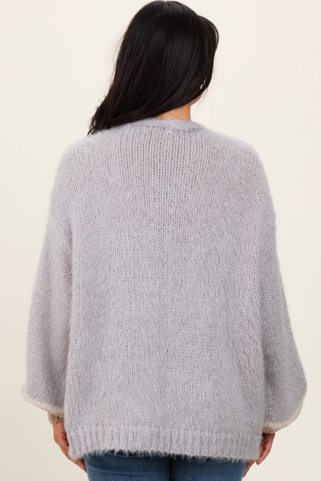 Light Grey Brushed Knit Striped Sleeve Cardigan
