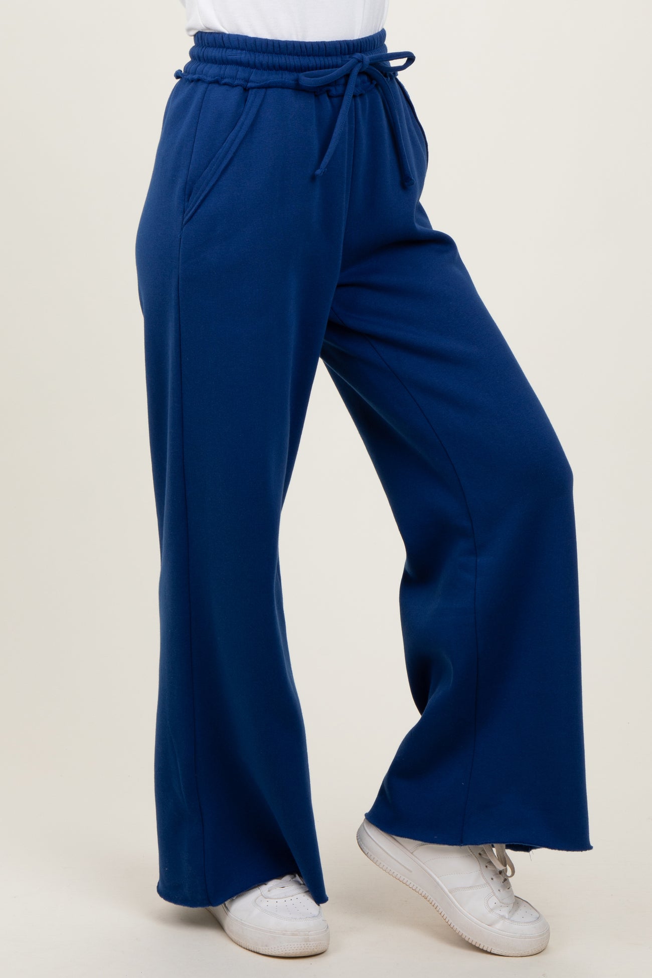 Light Navy Exposed Seam Wide Leg Sweatpants