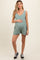 A solid maternity romper with a back cutout and two side pockets with button detail. Double lined.