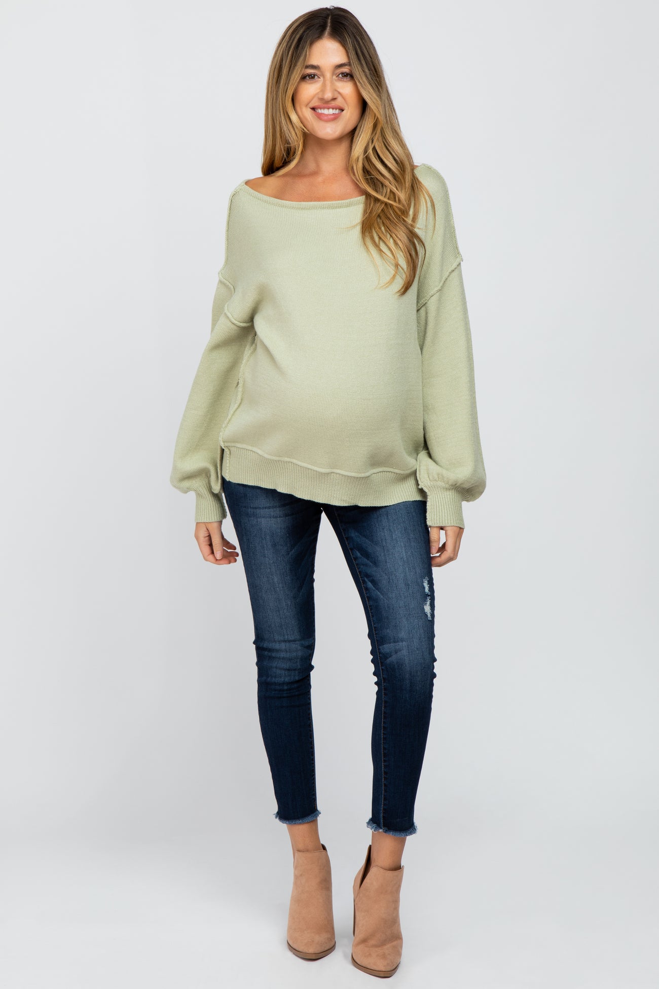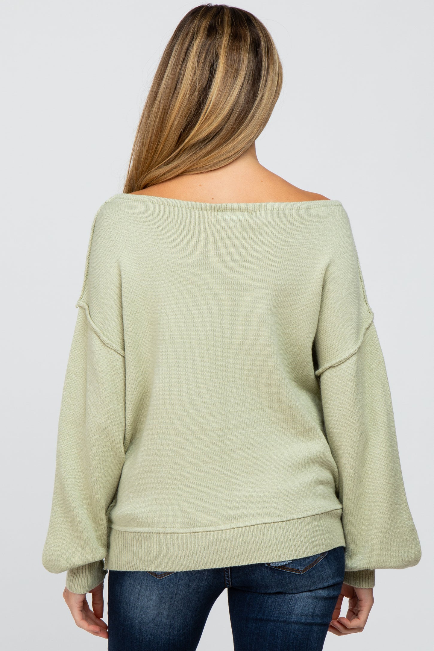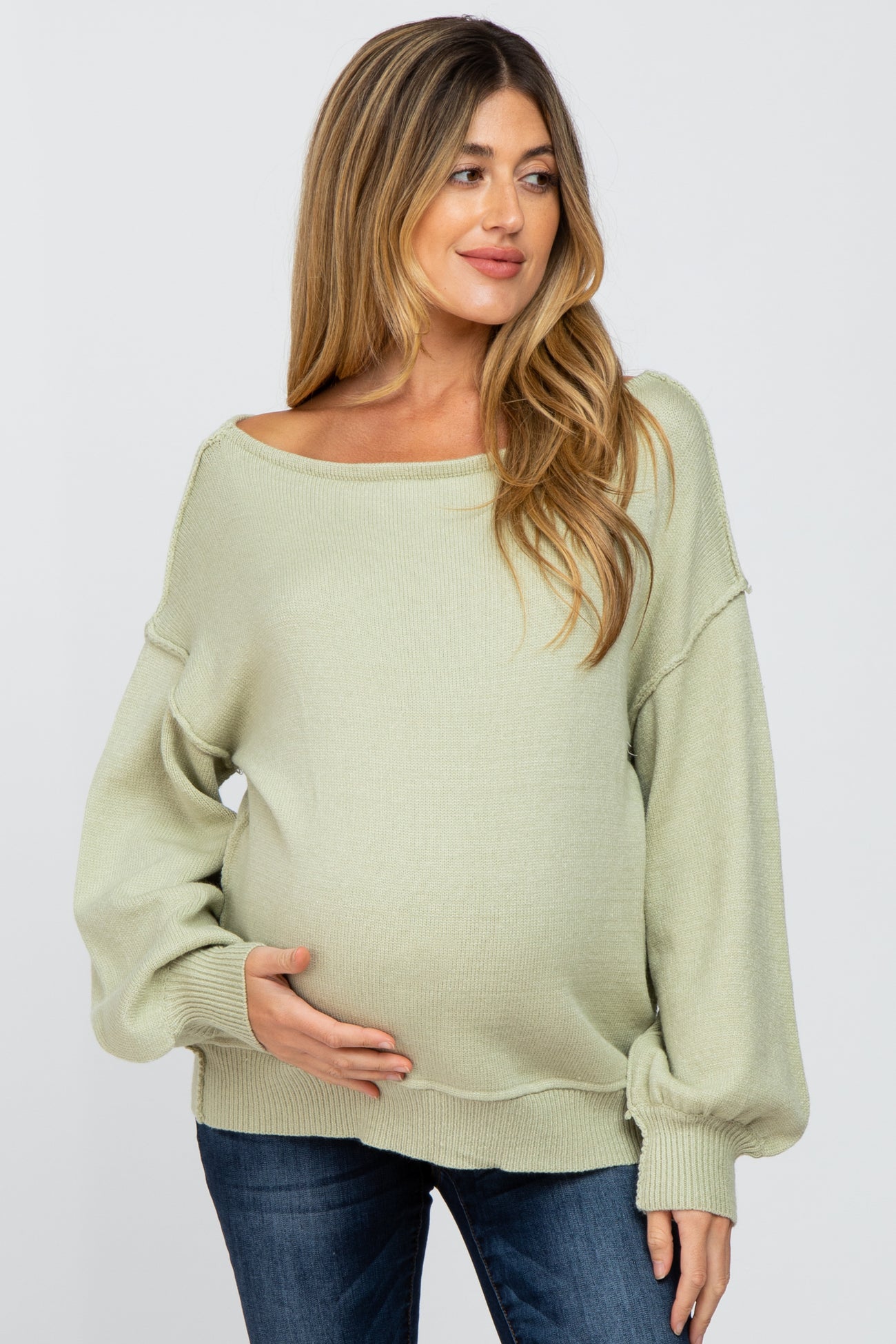 Light Olive Boat Neck Bubble Sleeve Maternity Sweater