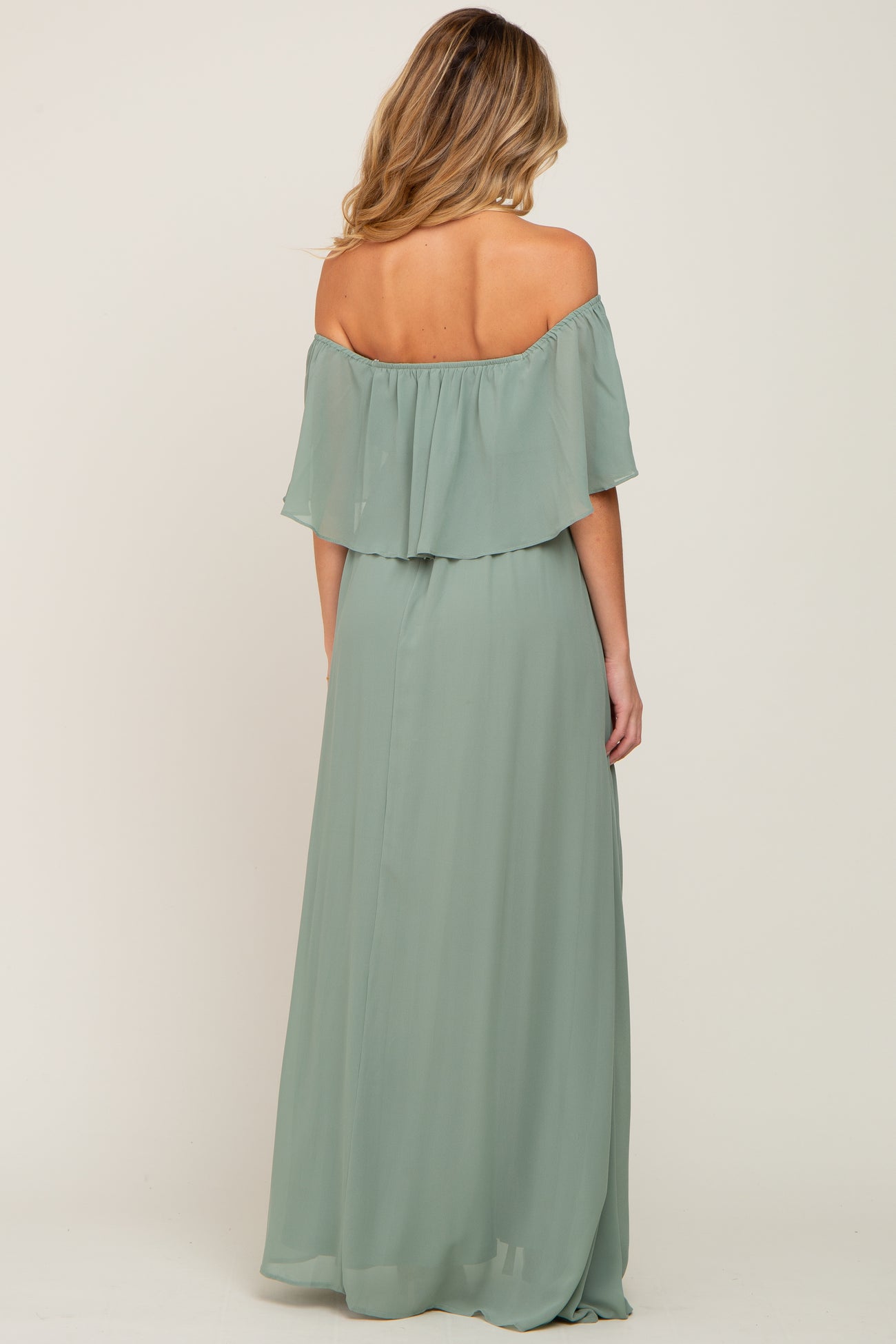 Light Olive Chiffon Off Shoulder Maternity Maxi Dress