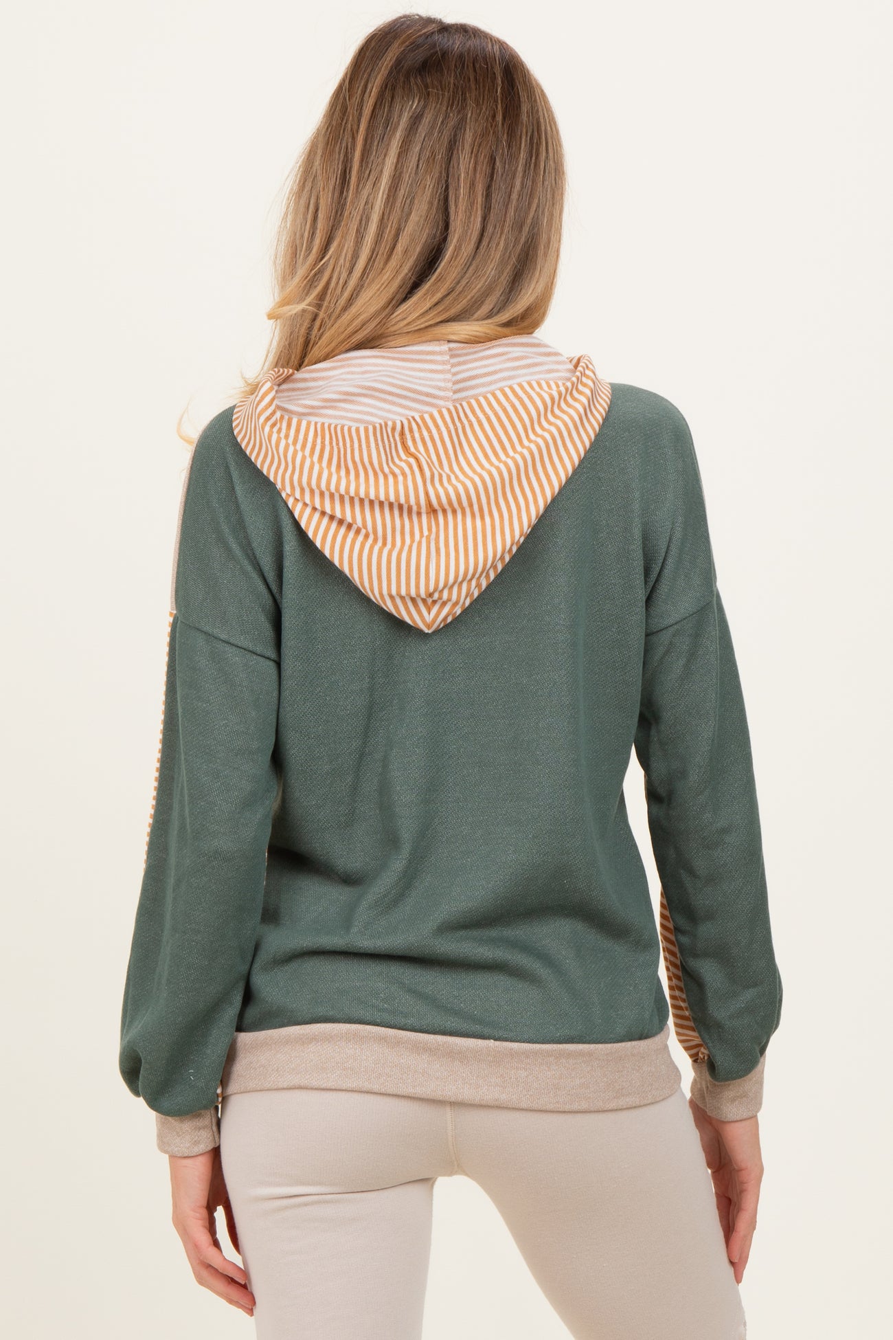 Light Olive Colorblock Stripe Maternity Pullover Hoodie