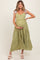 Light Olive Embroidered Smocked Shoulder Tie Maternity Maxi Dress