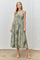 Light Olive Floral Sleeveless Midi Dress