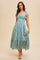 Light Olive Floral Smocked Ruffle Detail Midi Dress