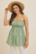 Light Olive Linen Ruched Strapless Tube Tunic Top