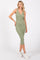Light Olive Ribbed Fitted Sleeveless Snap Button Dress