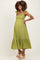 Light Olive Scallop Trim Shoulder Tie Maternity Midi Dress