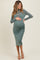 Light Olive Shimmer Mesh Long Sleeve Ruched Maternity Midi Dress