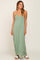 A solid knit maxi dress featuring a v-neckline, adjustable cami straps and side pockets.