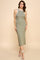 Light Olive/Soft White High Neck Ribbed Sleeveless Midi Dress