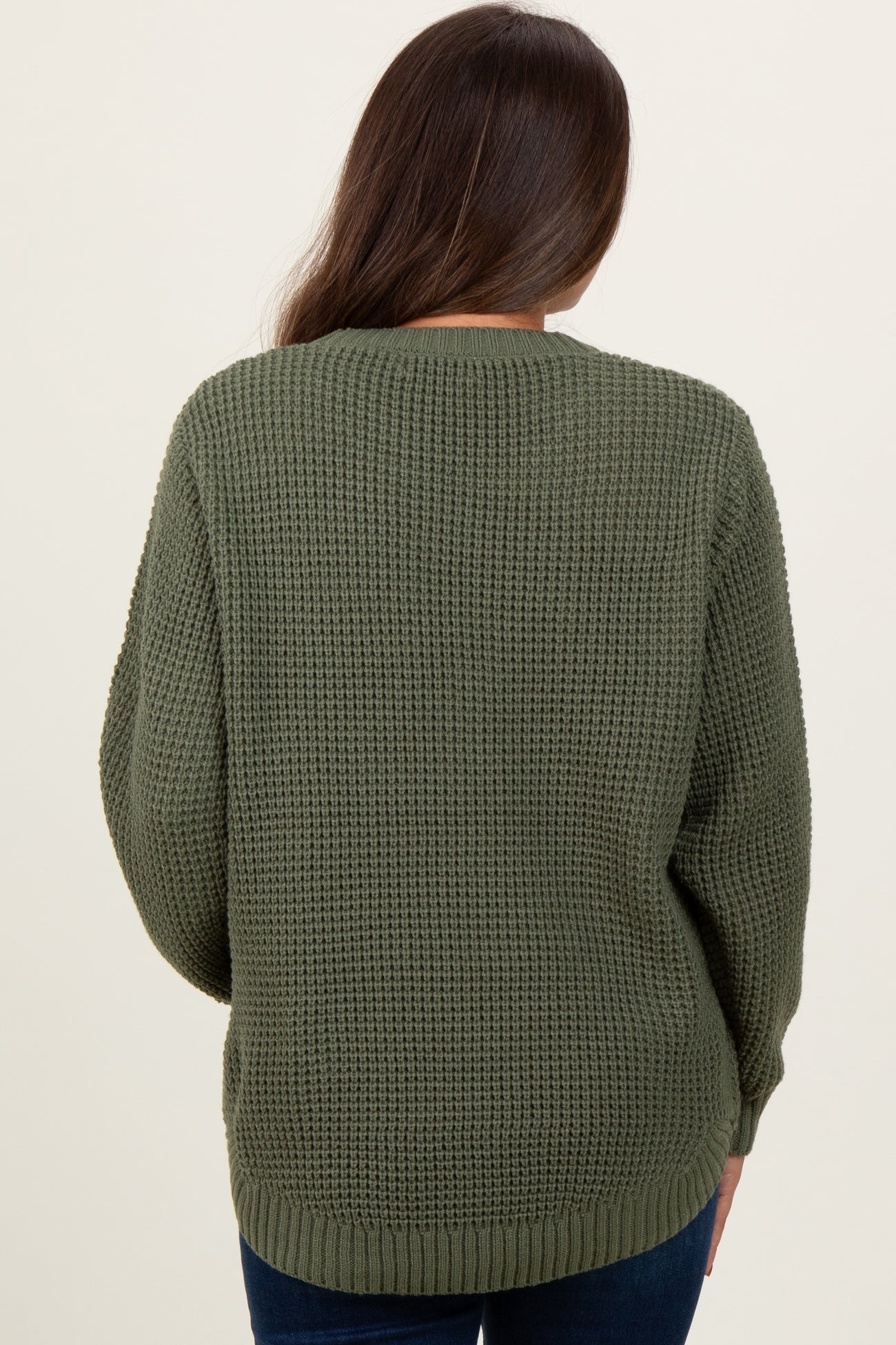 Light Olive Waffle Knit Rounded Hem Maternity Sweater