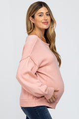 Light Pink Boat Neck Bubble Sleeve Maternity Sweater