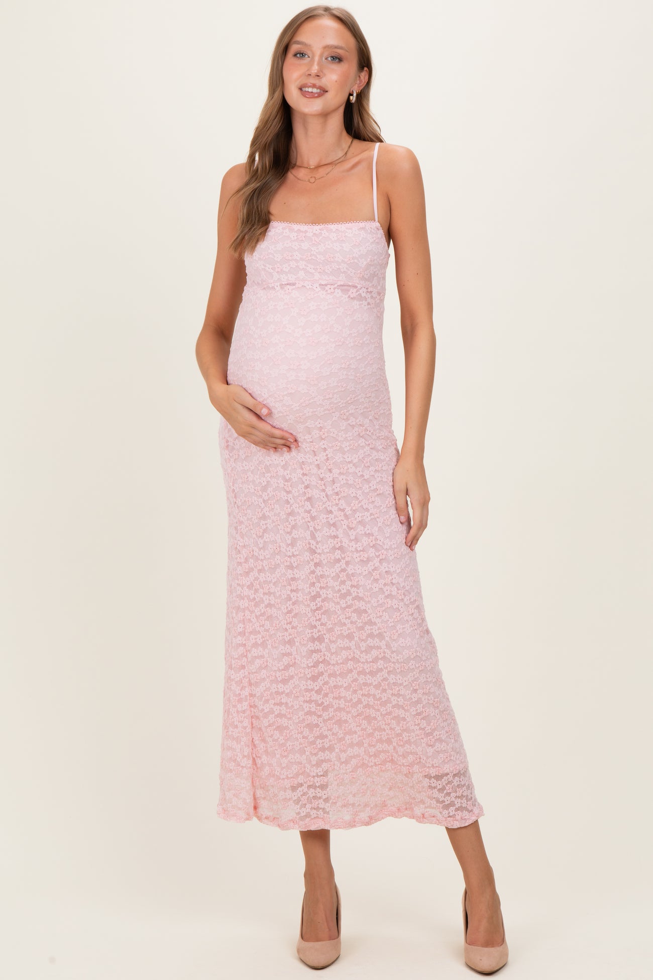 Light Pink Floral Lace Cutout Maternity Maxi Dress