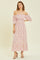 A floral print maxi dress featuring short sleeves, a smocked top, a ruffle hem and a square neckline.