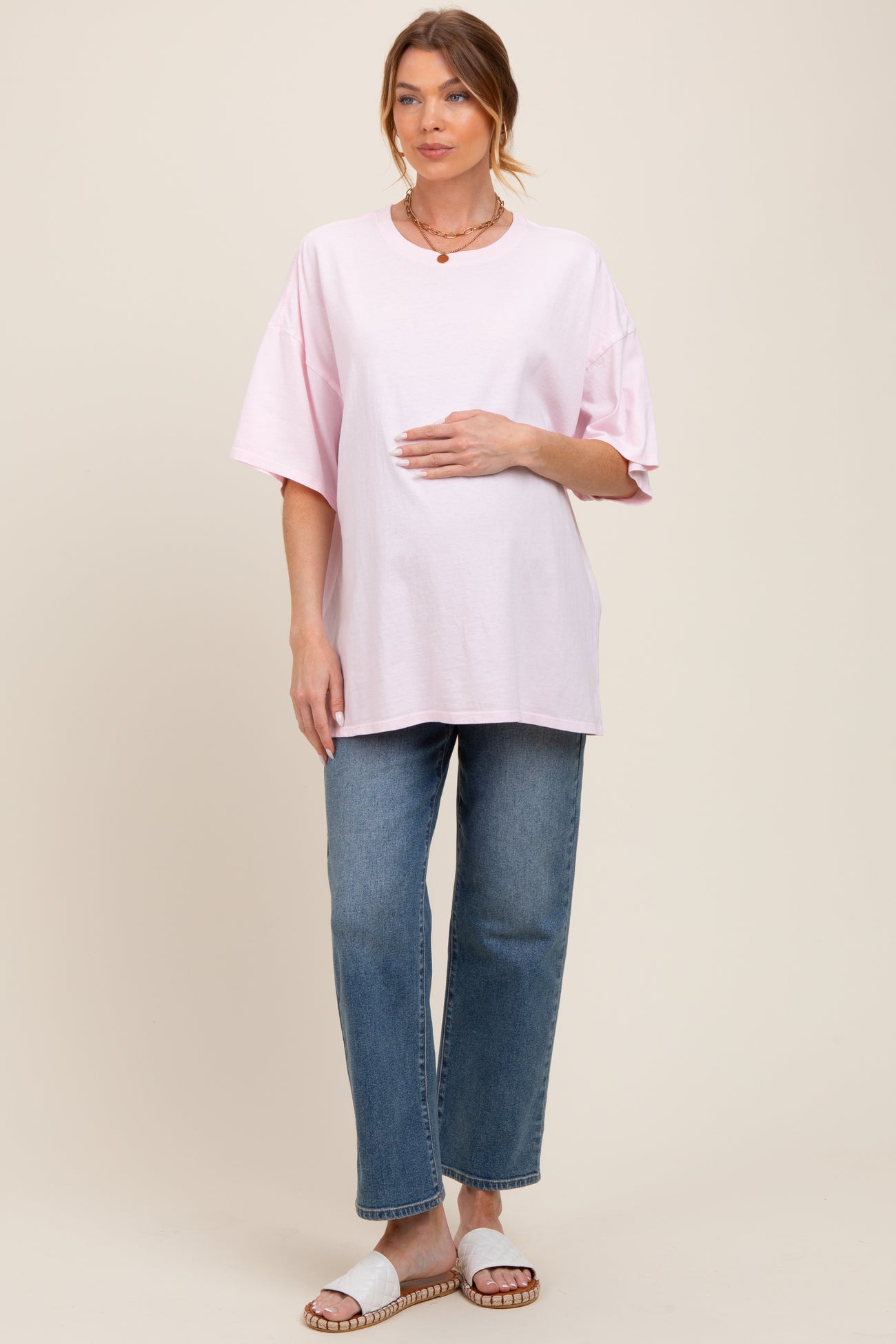 Light Pink Mineral Washed Oversized Maternity T-Shirt