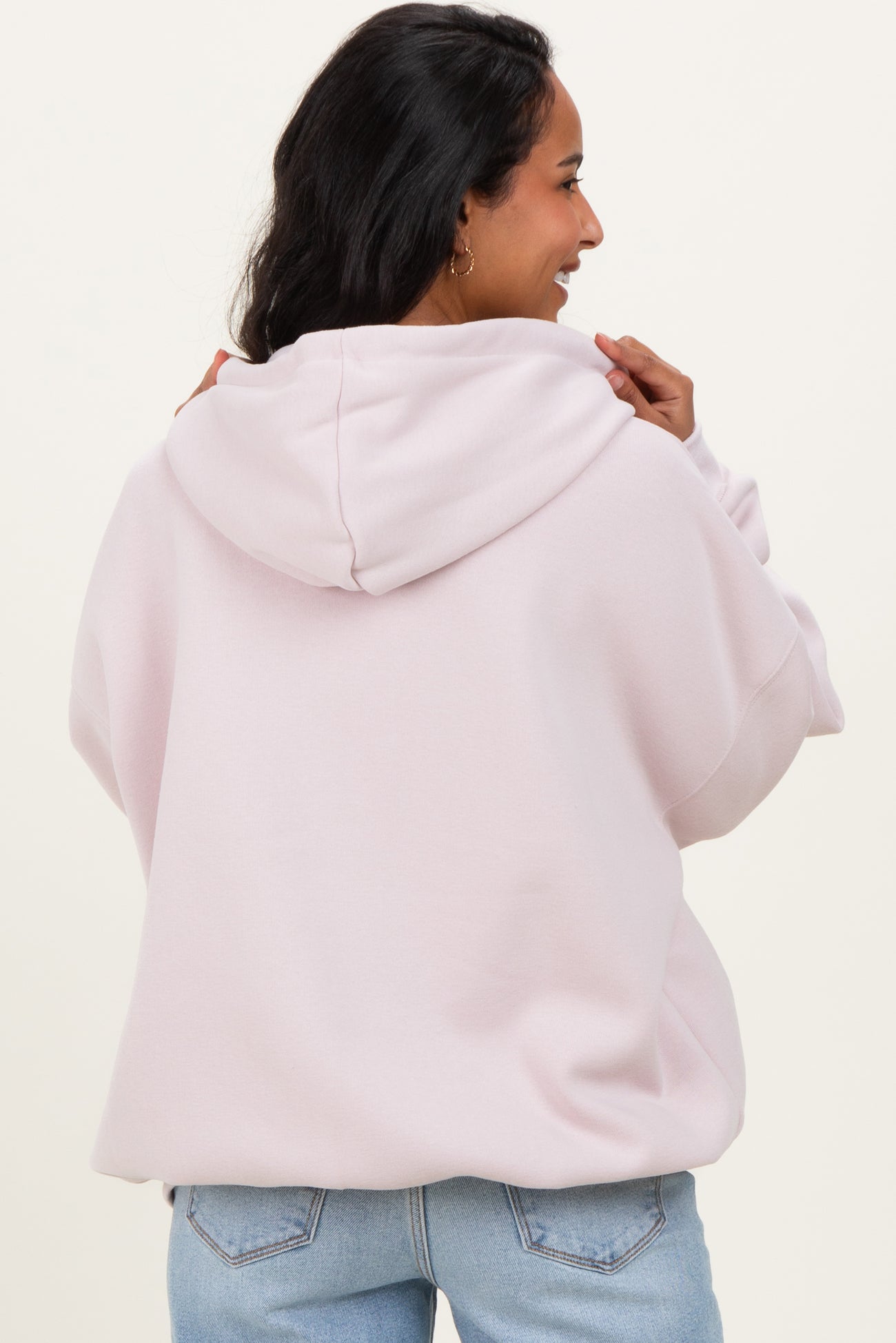Light Pink Oversized Maternity Zip Up Hoodie