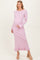 Elevate your maternity wardrobe with this ribbed knit maxi dress designed for comfort and style throughout your pregnancy. Crafted from a soft, stretchy fabric, it gently hugs your growing bump while providing ease of movement. The dress features a flattering bow detail at the back, adding a charming and feminine touch. Long sleeves with delicate button accents and a subtle ruffled hem complete the look, making it perfect for both casual outings and special occasions. Embrace effortless elegance and cozy sophistication with this must-have maternity dress.