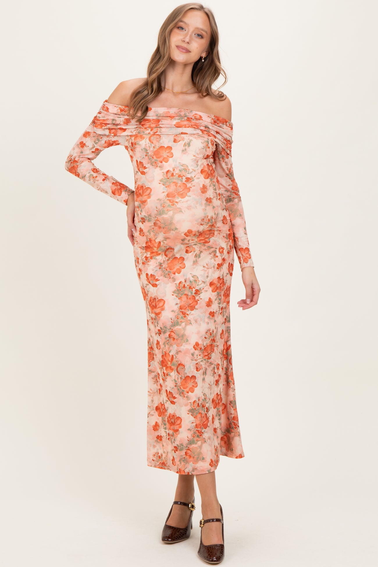Light Pink Rose Floral Off Shoulder Maternity Maxi Dress