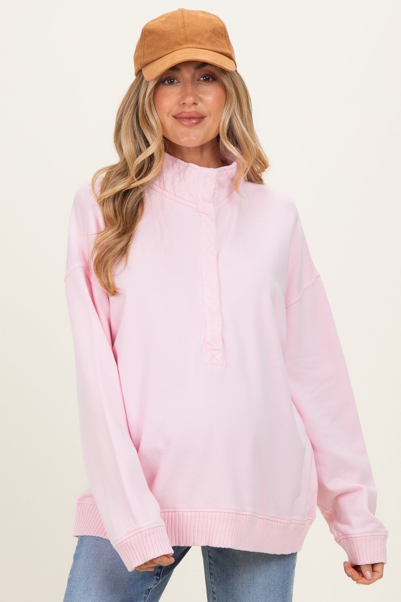 Light Pink Snap Collar Oversized Maternity Sweatshirt