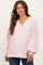 Light Pink Solid Rib Long Sleeve V-Neck Oversized Maternity Tunic Top