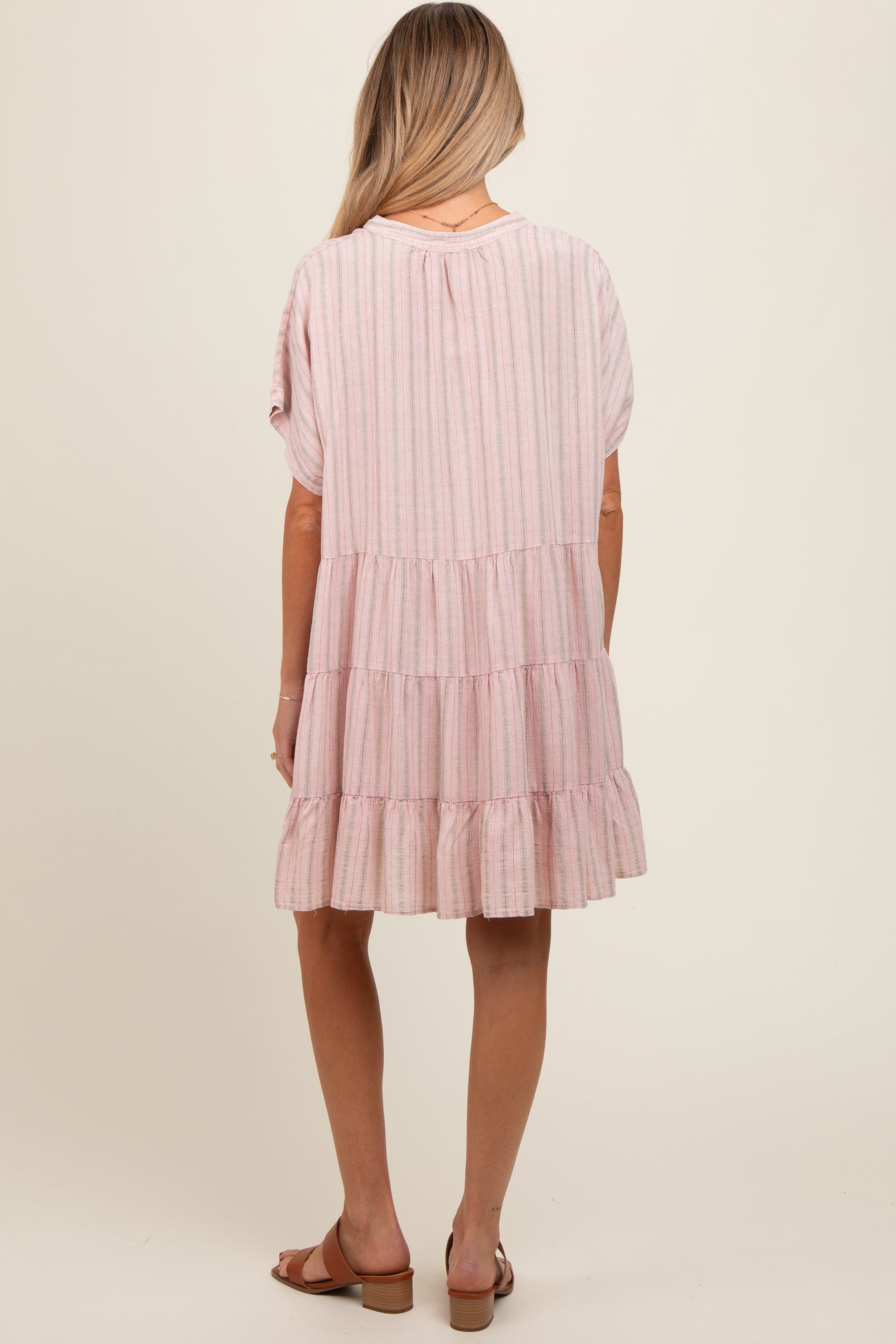 Light Pink Striped Button Front Maternity Dress