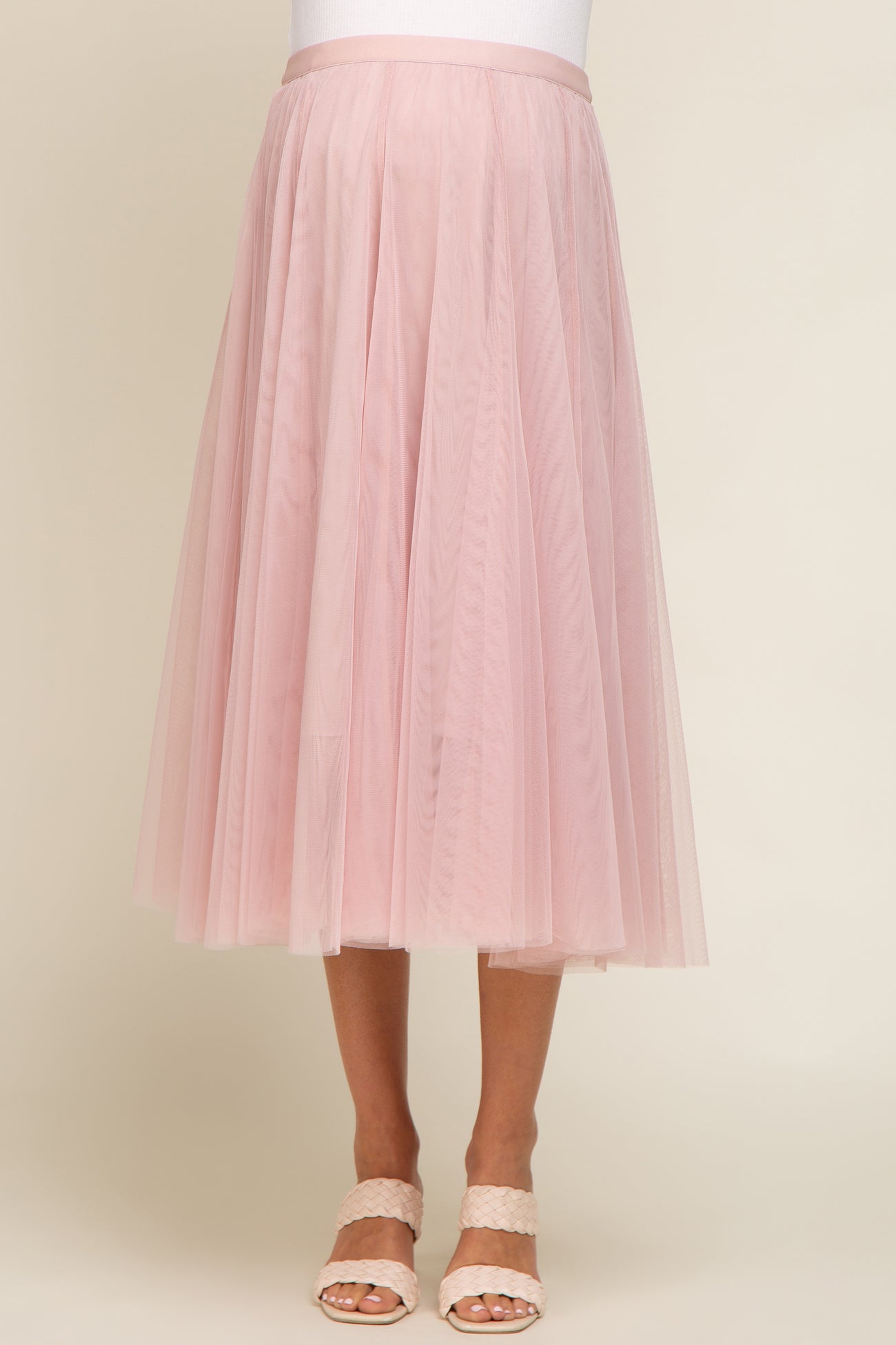 Light Pink Tulle Maternity Midi Skirt