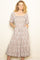 Elevate your style with this Light Taupe Floral Back Cutout Ribbon Tie Maxi Dress. Featuring a delicate white floral print on a soft taupe background, this dress offers a charming blend of elegance and comfort. The square neckline and puffed three-quarter sleeves create a flattering silhouette, while the back cutout with ribbon tie adds a subtle touch of allure. Crafted from lightweight fabric, it's perfect for warm days and breezy evenings. With convenient side pockets and a tiered maxi skirt, this dress is as practical as it is stylish. Ideal for brunch, garden parties, or a relaxed day out.