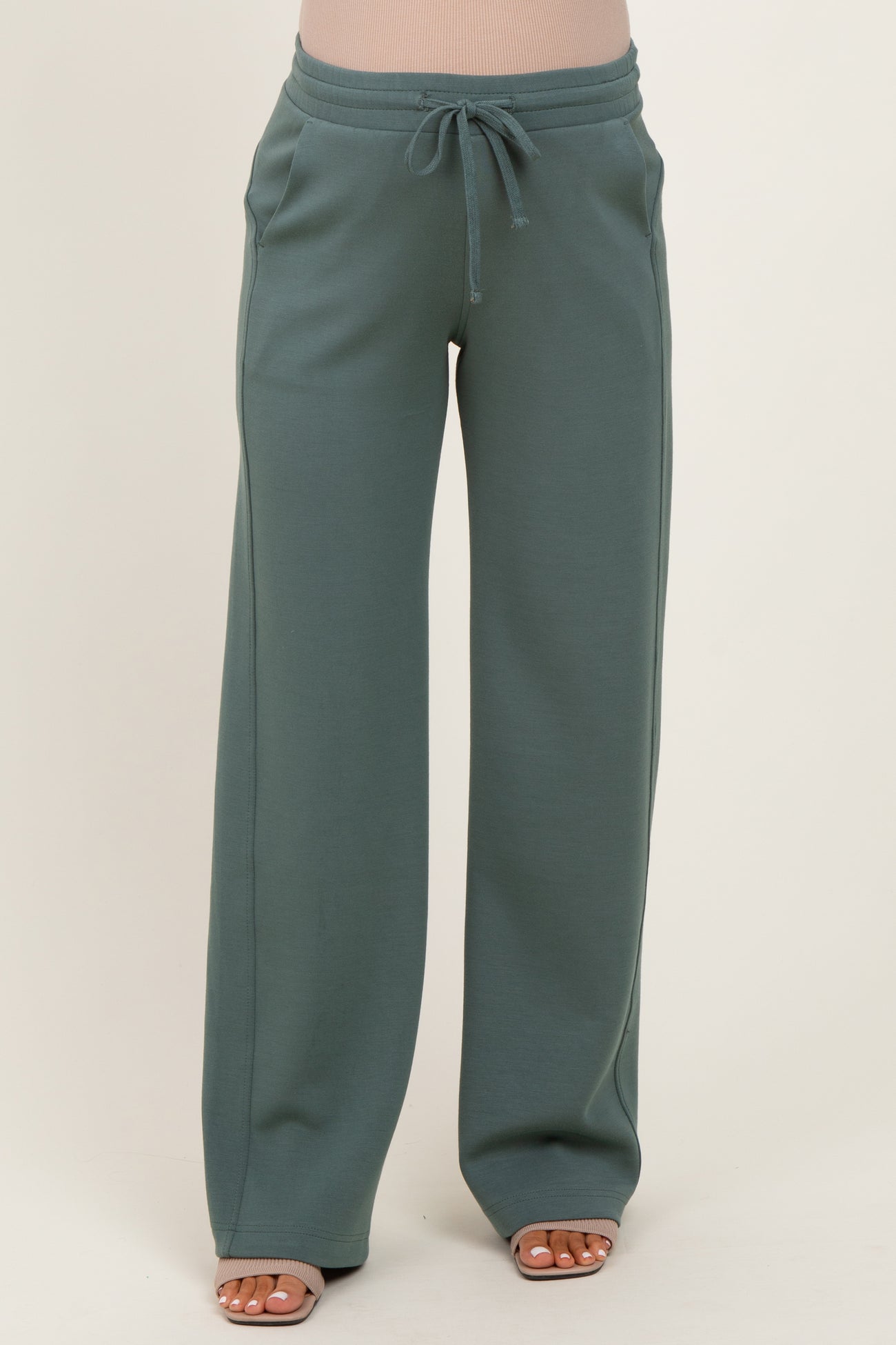 Light Teal Straight Leg Drawstring Maternity Sweatpants