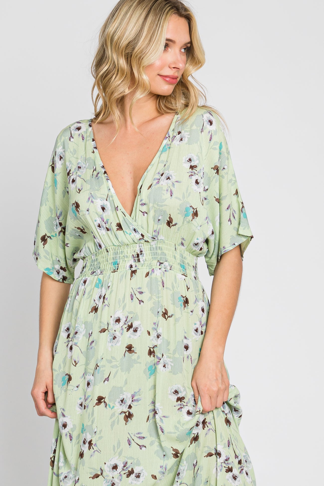 Lime Floral Wrap V-Neck Smocked Waist Maxi Dress