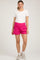 A pair of solid active maternity shorts featuring a curved slit hem and an elastic waistband.