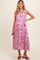 Magenta Floral Ruffle Mock Neck Tiered Sleeveless Maternity Midi Dress