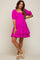Magenta Puff Sleeve Ruffle Accent Maternity Dress
