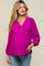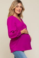 Details A solid textured maternity blouse featuring long sleeves and a v-neckline. Content + Care