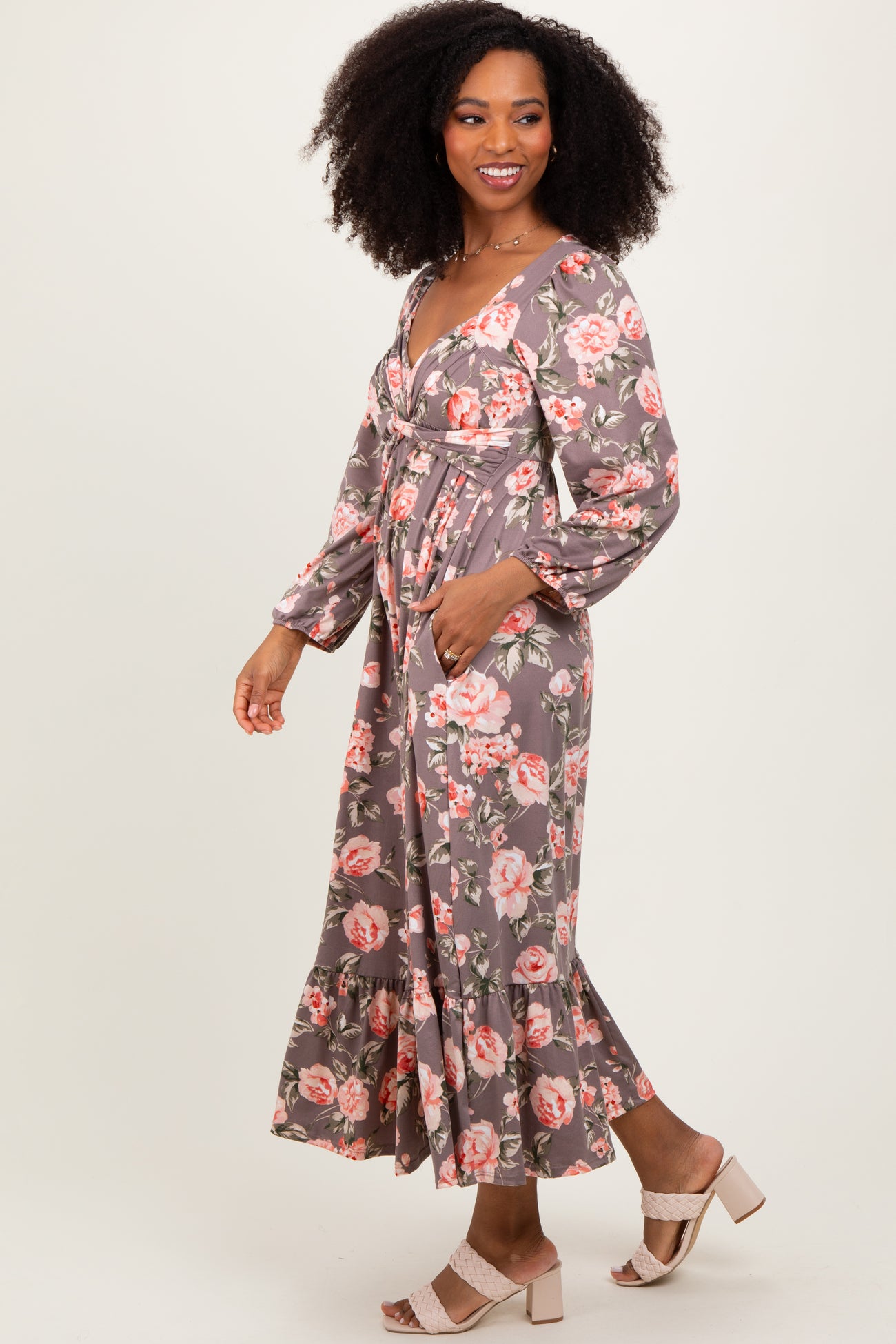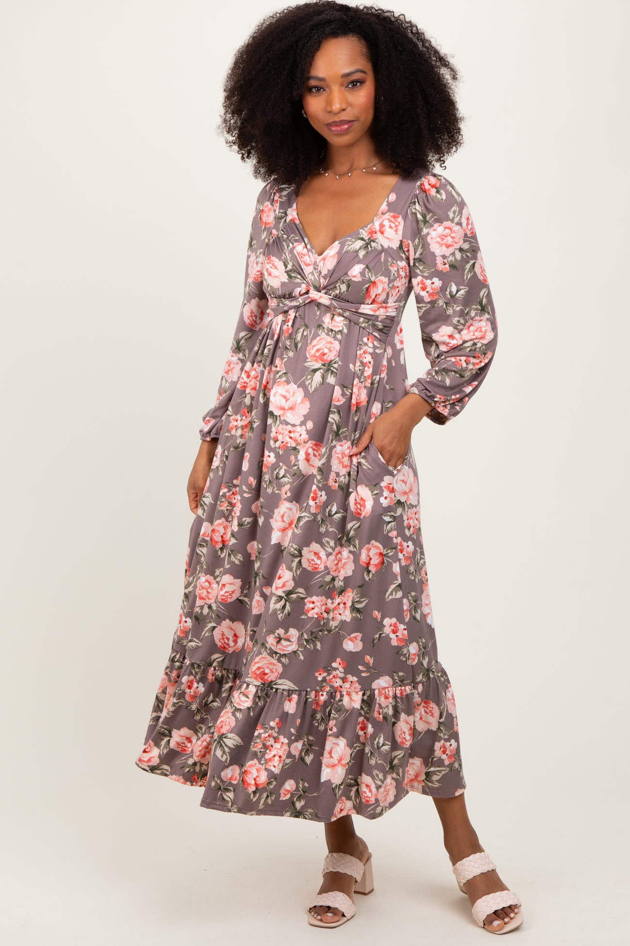 Mauve Blush Sweetheart Neckline Maxi With Side Pockets