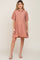 A solid maternity dress featuring a collar, front functioning buttons, shirring at the waist, and side pockets.