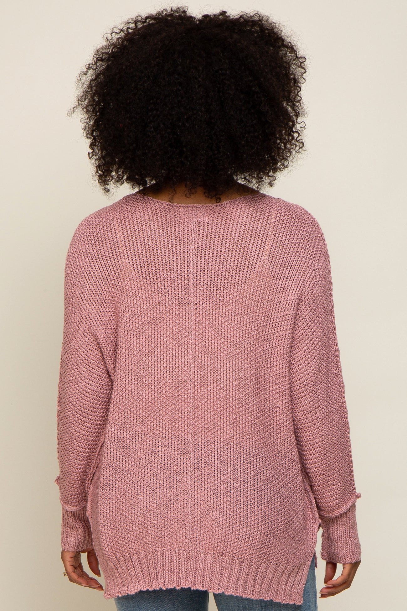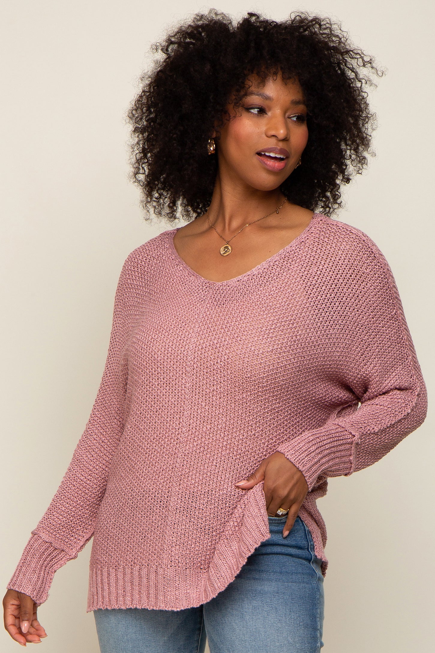 Mauve Chunky Knit Side Slit Sweater