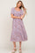 Mauve Floral Smocked Sweetheart Neck Midi Dress