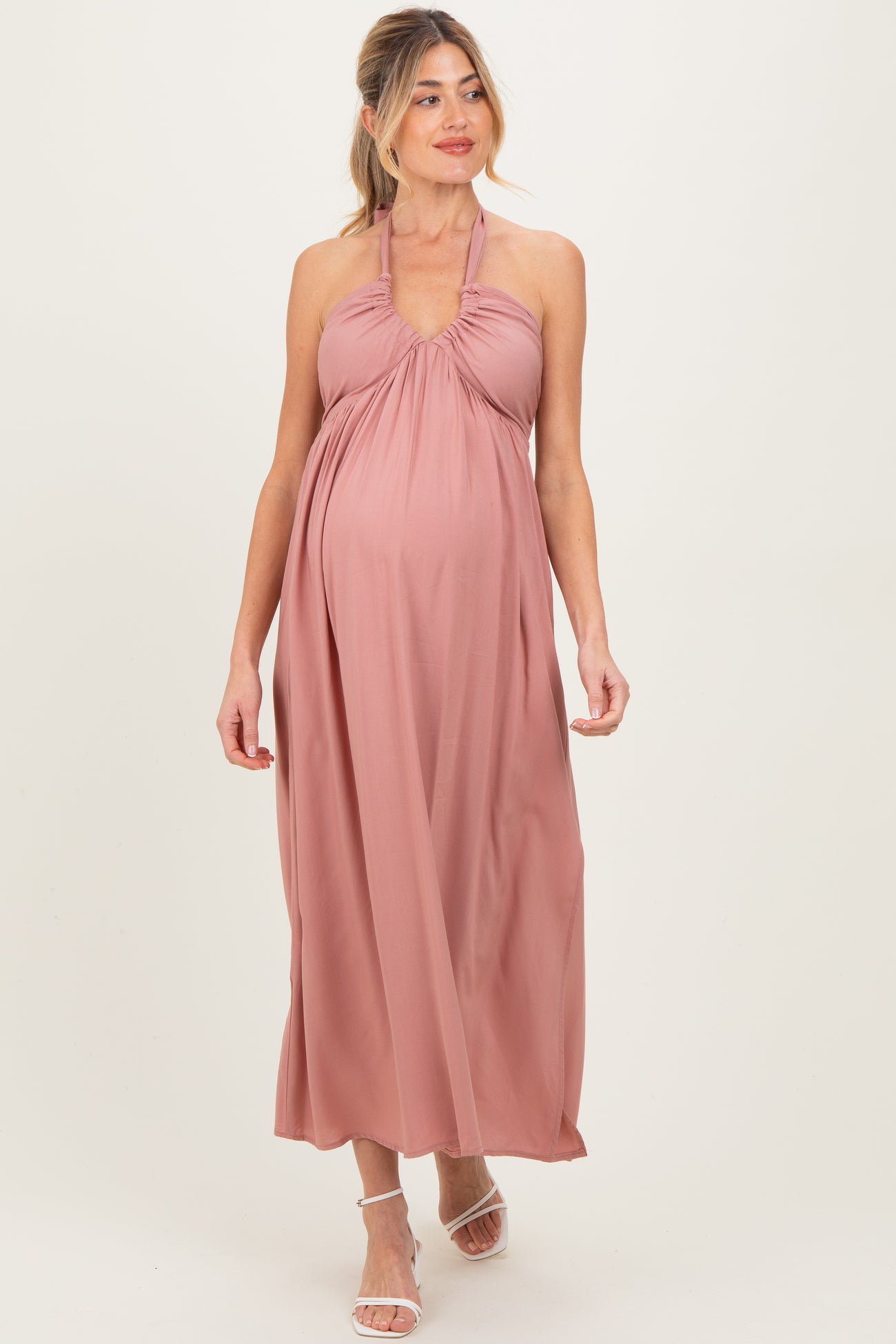 Mauve Halter Neck Side Slit Maternity Midi Dress