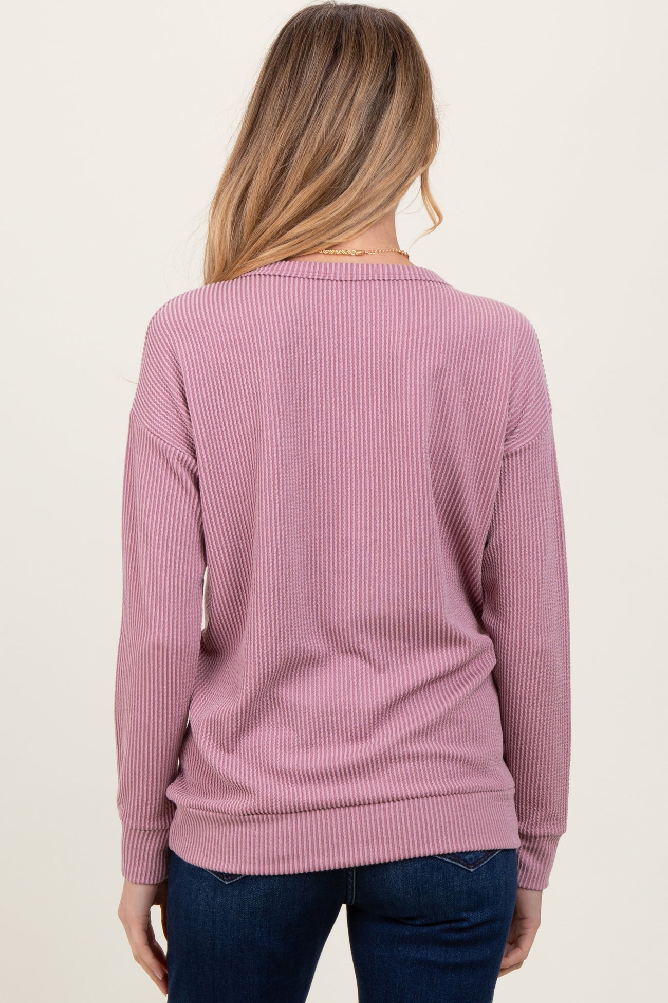 Mauve Ribbed Long Sleeve Maternity Pullover Top