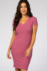 Mauve Ribbed Maternity Dress