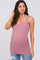 A solid hue maternity tank top featuring a squared neckline and ruched sides.