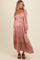 Mauve Satin Floral Pleated Tiered Maternity Maxi Dress