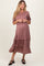 Mauve Satin Ruffle Trim Maternity Midi Dress