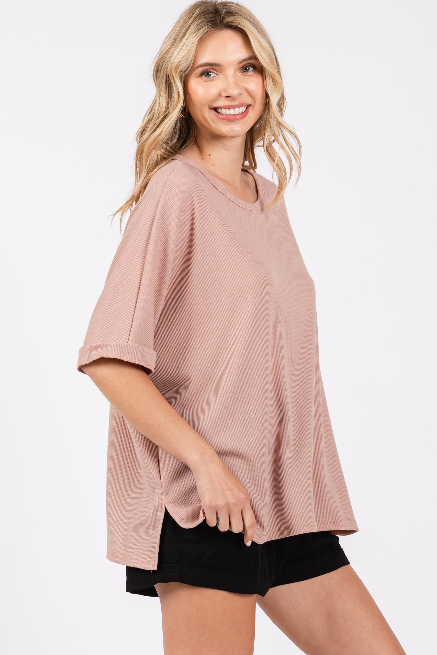 Mauve Waffle Knit Dolman Top