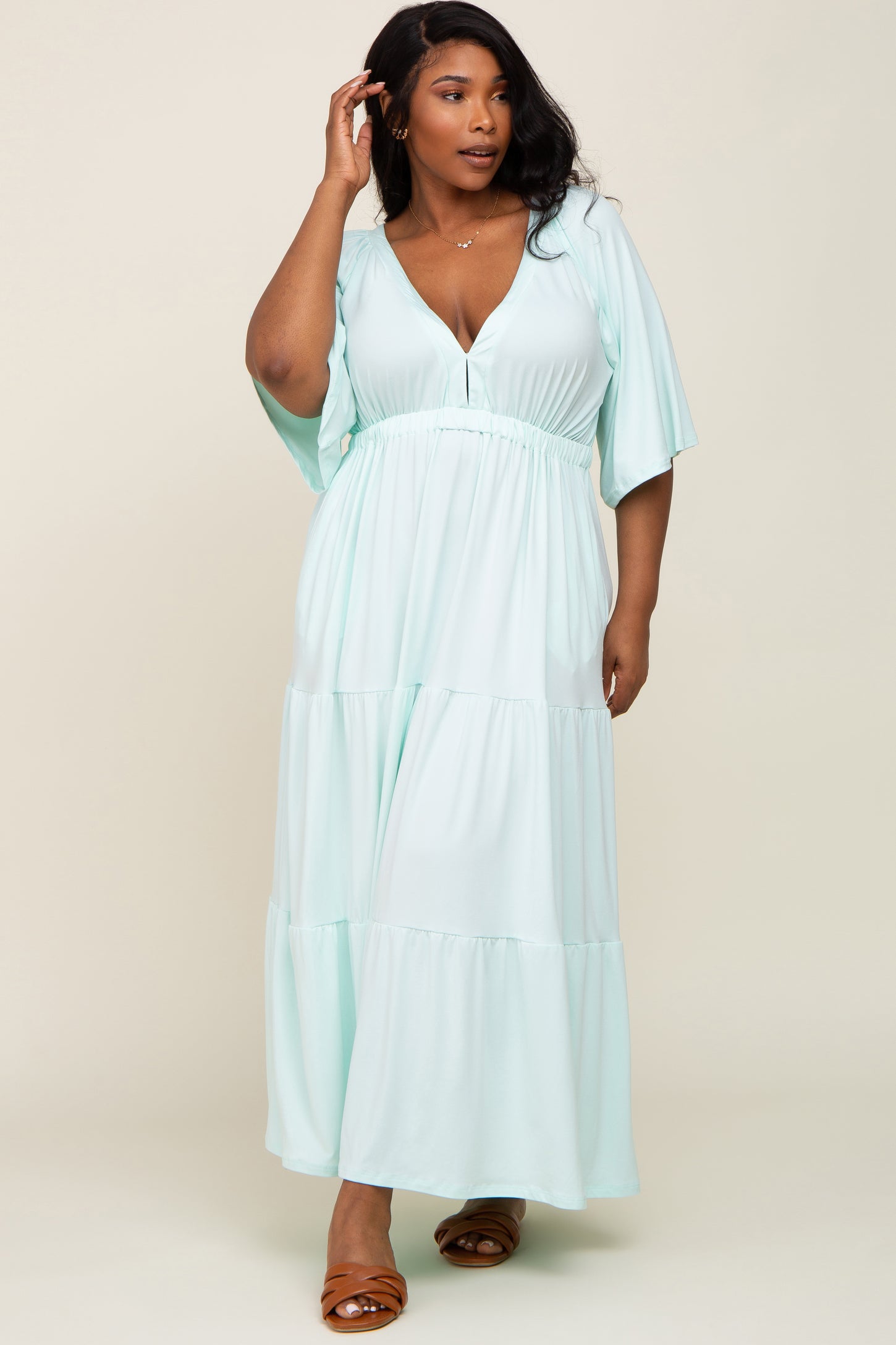 Mint Green Deep V-Neck Tiered Plus Maxi Dress