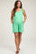 A solid knit maternity romper featuring a rounded neckline and knotted straps.