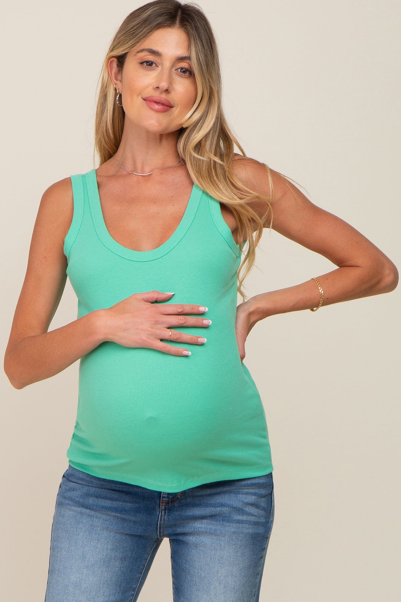 Mint Green Ribbed Basic Maternity Tank